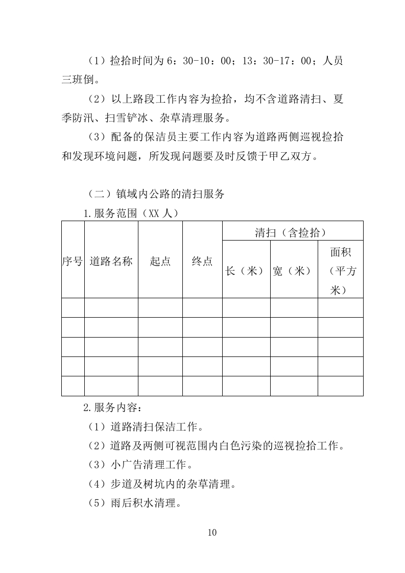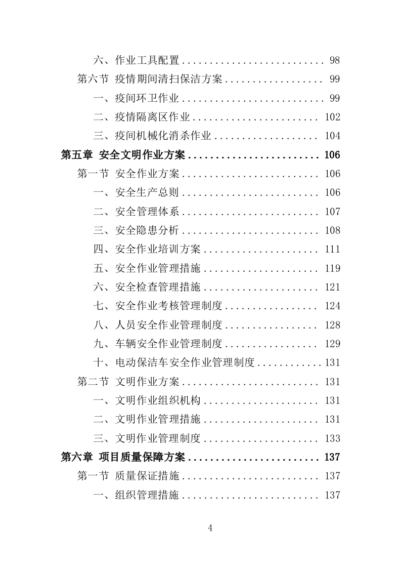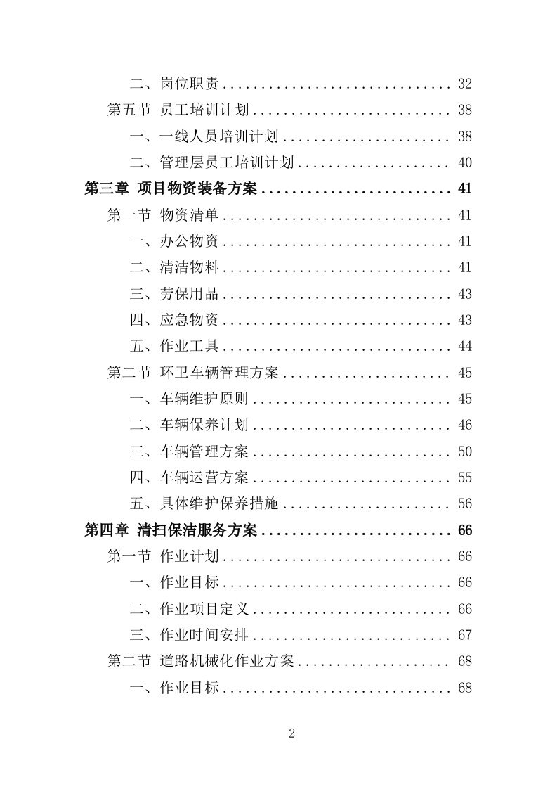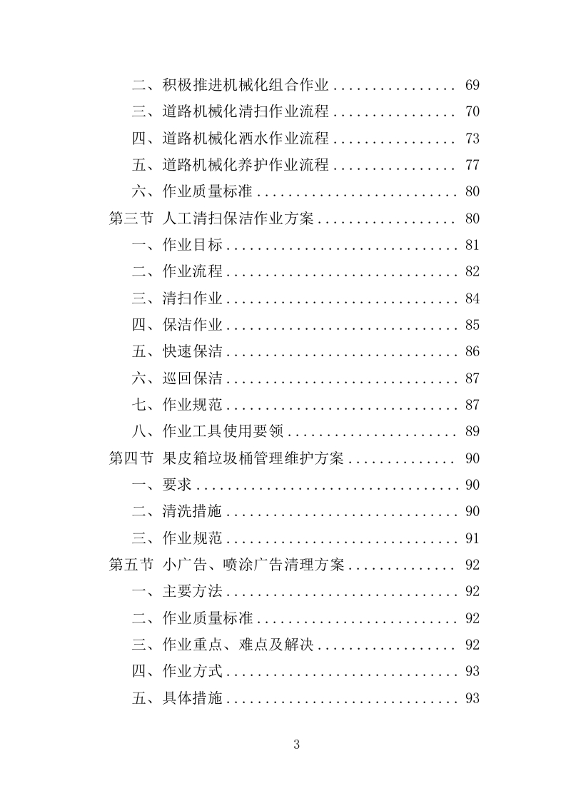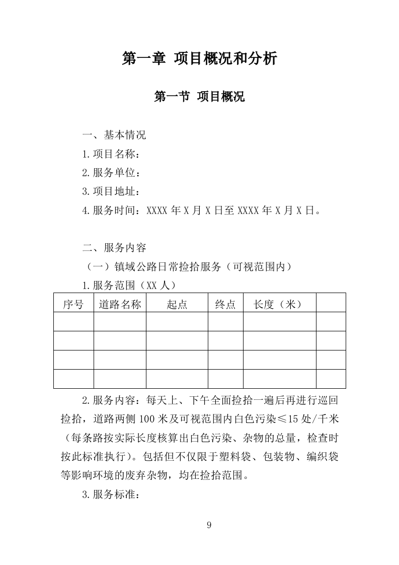 道路清扫保洁投标方案目录第一章项目概况和分析...。9第一节项目概况..·9一、基本情况..9二、服务内容....9三、公司优势....14第二节项目服务重点及优化措施..··15一、改善XX整体形象16二、制定完备的应急预案..·20三、提高人工清扫保洁效果.....·21四、建立优秀的项目管理团队....22五、提高机械化作业效率和质量。23第三节项目服务难点及优化措施.…24一、做好垃圾分类工作..25二、铲冰除雪的工作难点........·25三、改善垃圾乱排乱放现象.26四、清理落花落叶的工作难点...·27第二章项目组织机构和人员配备........28第一节项目组织架构.·28第二节人员选拔说明...·...·29第三节管理人员情况...·...·29第四节部门职能与岗位职责.·30一、部门职能....···301