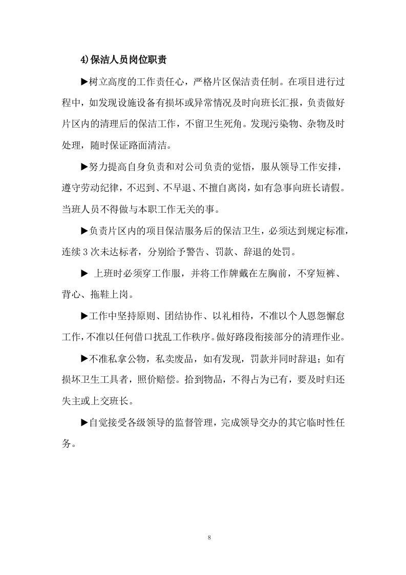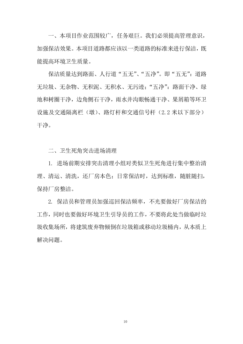 水电站厂房保洁服务投标方案目录一、服务方案.(一)组织机构与人员配置.41.组织机构设置.·.4(1)项目组织机构的建立..........4(2)项目组织框图.......................4(3)项目组织岗位职责..·5(二)服务方案及项目管理方案101.本项目重点难点理解..102.总体服务设想.…13(1)用精细化管理提供高品质保洁服务....13(2)导入三体系标准提供规范化服务.....15(3)用人性化管理提供舒心服务.......15(4)用科学化管理提供专业服务16(5)节约资源的措施.....................183.服务方案及质量、安全、卫生、环保等保证措施19(1)服务方案...19(2)质量保证措施..72(3)安全保证措施90(4)卫生保证措施........122(5)环保保证措施.....136