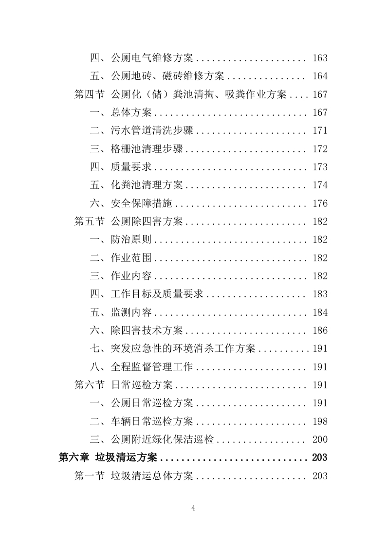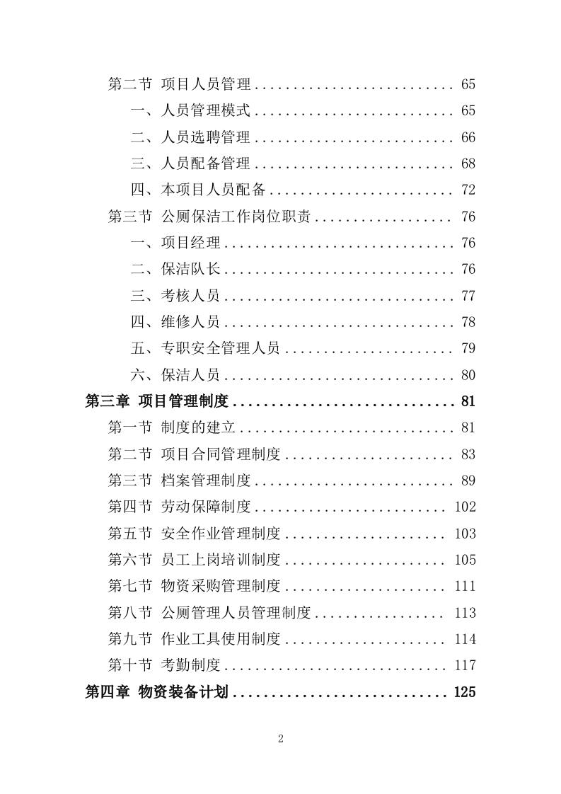 公厕保洁服务投标方案目录第一章项目整体服务设想及策划14第一节项目概况....14一、项目服务范围...14二、服务期限...14三、项目服务需求.15第二节保洁服务分析..·.·.·19一、保洁服务行业概况及市场分析.·19二、保洁服务行业存在的问题分析.·26三、保洁服务行业发展趋势..··29四、保洁服务行业竞争分析.·.·32五、保洁服务产业发展前景..·.37第三节服务整体设想.·.42一、服务目标和理念..42二、整体设想44三、管理的基本理念..·45四、公厕保洁方案..·48五、卫生质量保障措施..51六、管理措施....54第二章项目管理机构及人员配备.··64第一节项目组织机构..64一、服务管理模式.·64二、组织结构..641