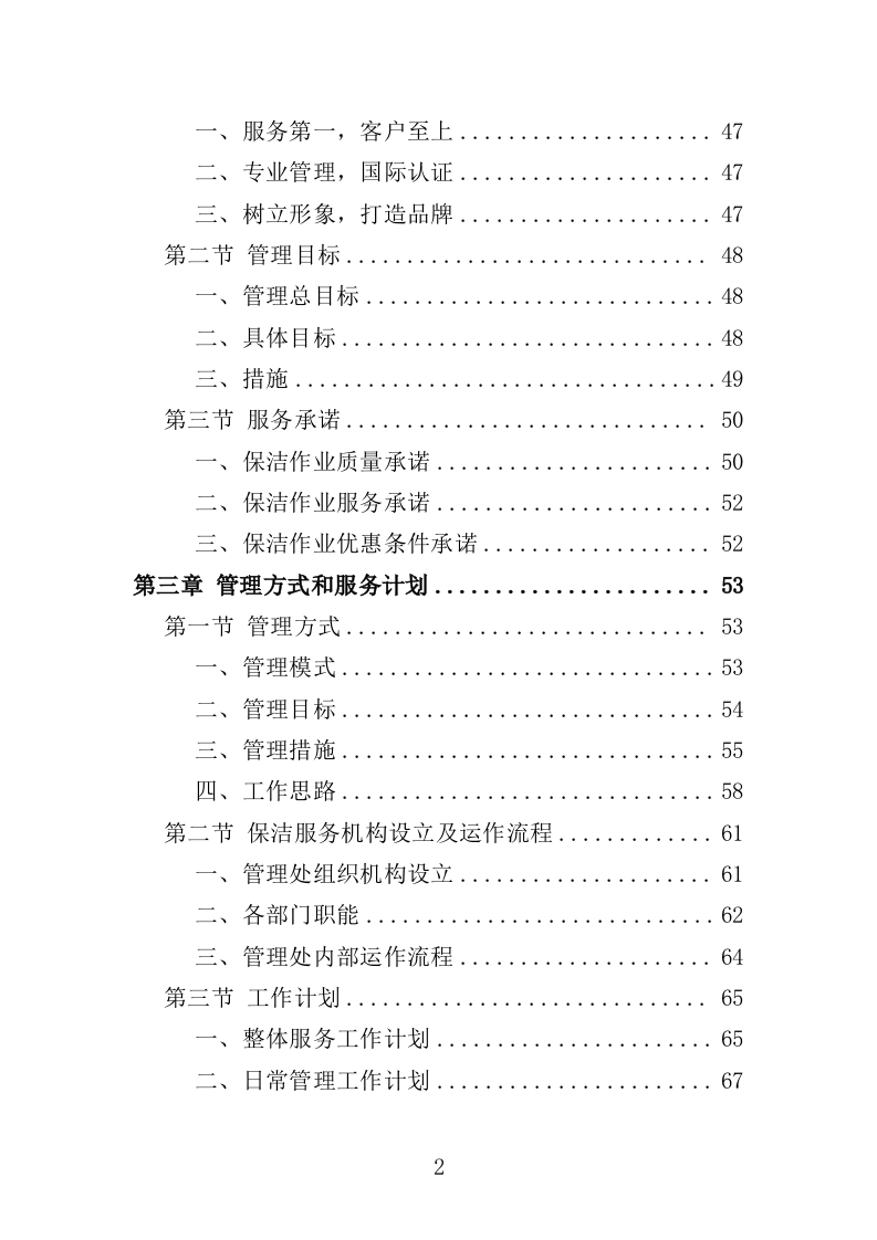 河道保洁服务投标方案目录第一章服务整体设想及策划..16第一节项目概况...16一、项目实施区域...16二、服务期限...16三、项目内容及要求...16第二节保洁服务分析17一、保洁服务行业概况及市场分析.·17二、保洁服务行业存在的问题分析.·。25三、保洁服务行业发展趋势..28四、保洁服务行业竞争分析...32五、保洁服务产业发展前景.·.·..36第三节服务整体设想及重点策划.···....41一、实施区域化管理.............41二、服务与管理并重,积极为政府决策提供管理手段42三、完善激励、监督、自我约束、信息反馈及处理机制.43四、针对道路和河道保洁工作的安全性,加强安全生产的管理.........45五、针对项目地域比较大,管理与服务比较复杂的特性,加强工作联系的工作思路..·,·46第二章服务承诺....。47第一节服务目标...471
