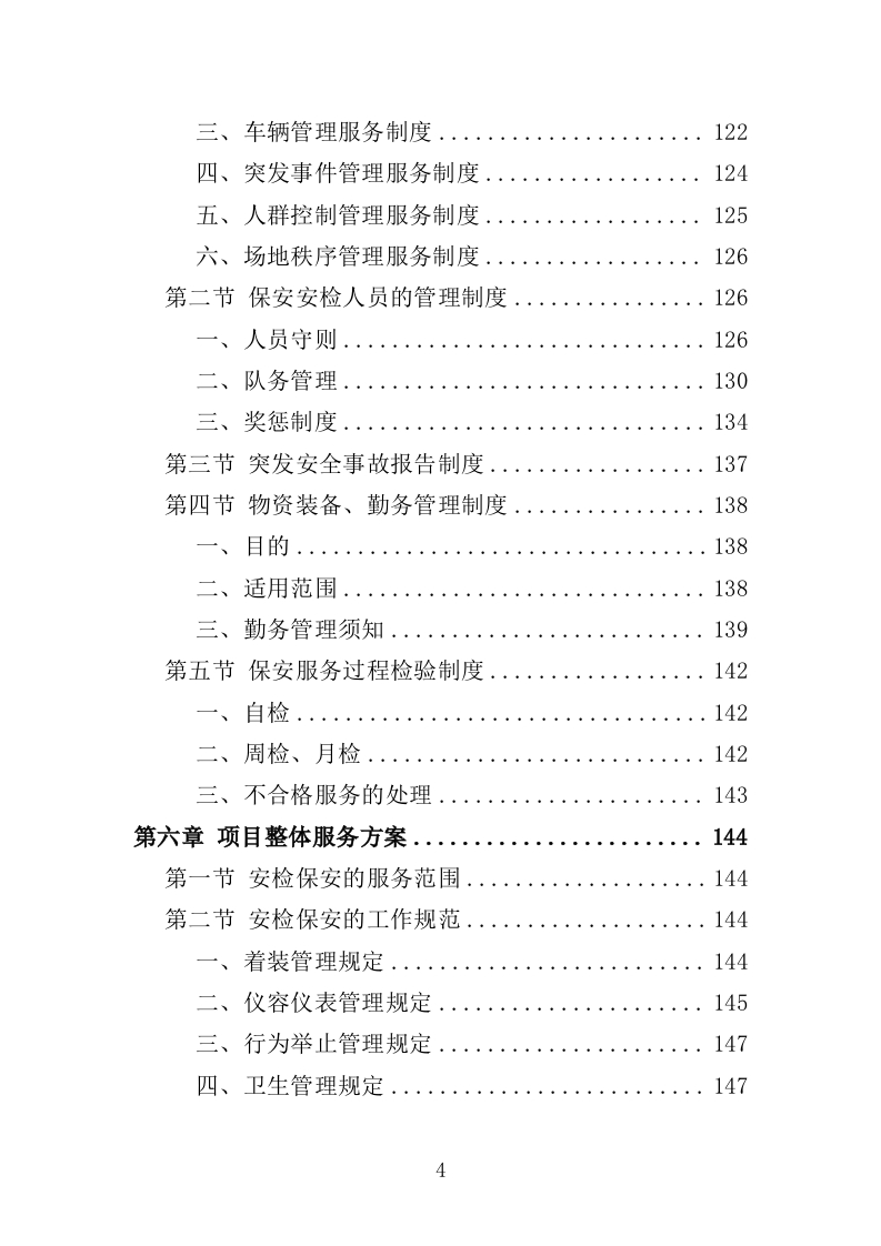 大型活动安保服务投标方案目录第一章项目背景及需求分析..·13第一节项目背景...13一、我国保安服务行业定义与分类…13二、我国保安行业的历史发展.·..。15三、我国保安行业的发展现状....·16四、我国安检服务行业的定义与分类17五、我国安检服务行业的发展现状和趋势.·21第二节需求分析..21一、项目概况.21二、服务要求22第二章项目整体服务设想和策划29第一节整体服务思路与策略...29一、服务理念..29二、管理定位30三、管理目标...32四、管理机制设想..32第二节服务内容及标准.··34一、服务内容..34二、服务标准..41第三节服务目标与流程.·44一、服务思想44二、服务目标451