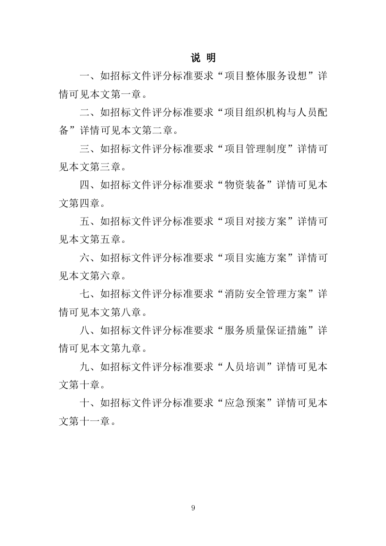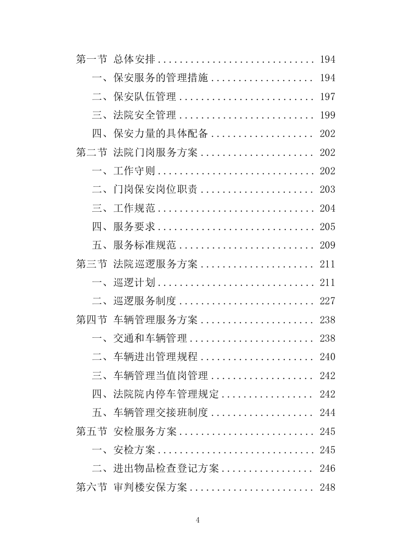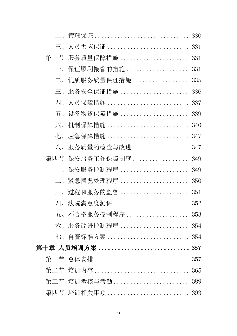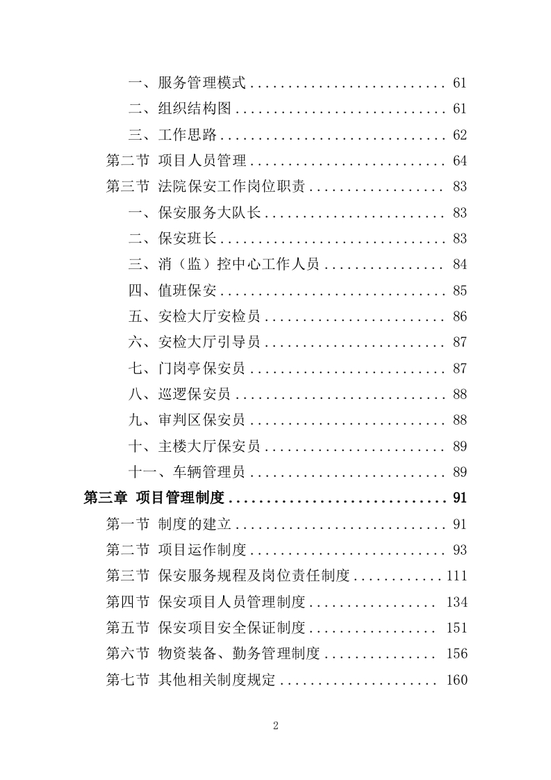 法院保安服务投标方案目录第一章项目整体服务设想.··。11第一节项目概述...11一、项目基本情况....11二、详细服务要求、内容和范围..·11三、服务质量要求.14四、人员配置数量..15五、采购人提供的相关条件..·.16第二节项目背景....16第三节项目整体服务设想...25一、服务理念...25二、整体管理服务策划...28三、人员管理安排..39四、服务流程.·....40五、安全保卫工作内容及要求..42六、项目管理服务承诺..。45七、监督管理机制..·51第四节项目重难点分析...55一、重难点分析...55二、拟采取的解决措施..·.·55第五节项目优化以及相关建议..·57第二章项目组织机构与人员配备..·61第一节项目组织机构.·611