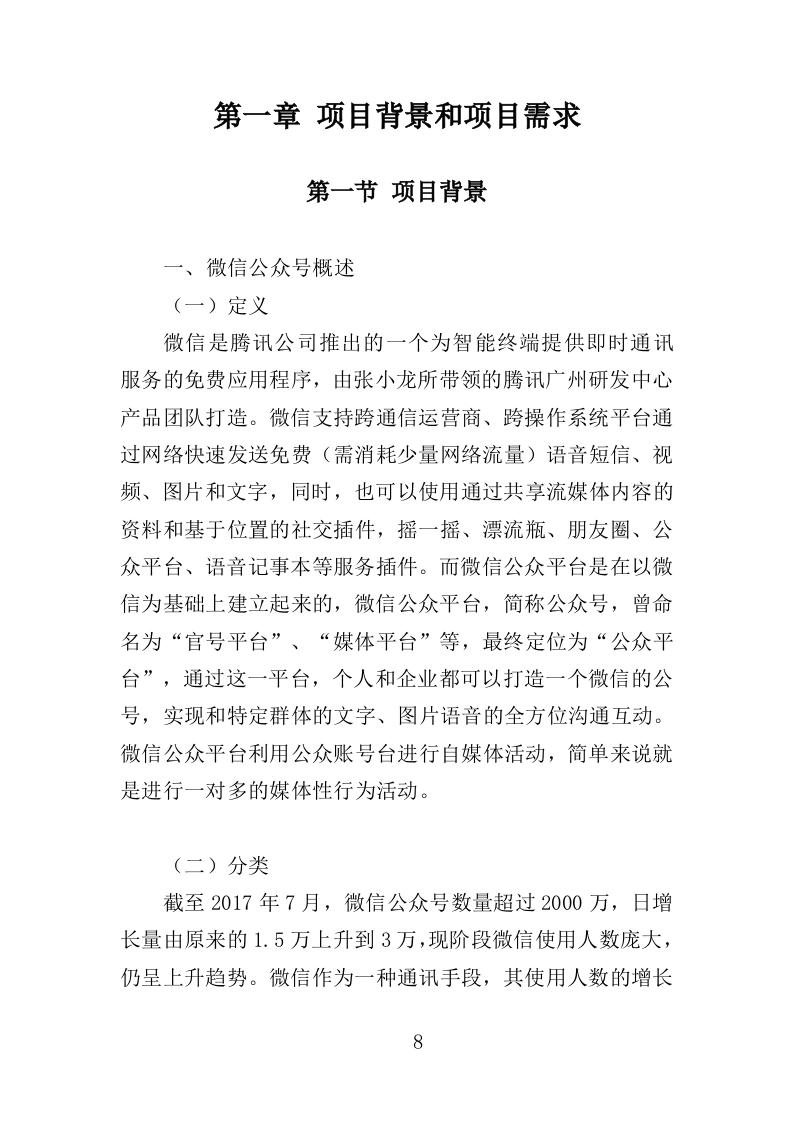 公众号运营服务投标方案408页adminxiao2个月前发布关注私信7.96MB406页43公众号运营服务投标方案408页此内容为付费资源,请付费后查看R99黄金会员免费钻石会员免费立即购买您当前未登录!建议登陆后购买,可保存购买订单付费资源 第1页 / 共406页 第2页 / 共406页 第3页 / 共406页 第4页 / 共406页 第5页 / 共406页 第6页 / 共406页 第7页 / 共406页 第8页 / 共406页 第9页 / 共406页 第10页 / 共406页 试读已结束,还剩396页,您可下载完整版后进行离线阅读 © 版权声明本站所有资源均来源于网络。THE END06运营服务 文本预览 公众号运营服务投标方案目录第一章项目背景和项目需求..10第一节项目背景..·..10一、微信公众号概述10二、微信公众号发展29三、微信公众号传播35四、微信公众号营销..38第二节项目需求..··41一、项目概况..41二、项目需求.42第二章项目总体实施方案43第一节公众号运营思想43一、运营误区..43二、运营思想...45第二节公众号运营技巧.·47一、精准命名...47二、丰富内容.47三、及时互动.48四、有效吸粉...49第三节公众号运营流程..·50第三章项目组织机构..·51第一节项目管理概念...51一、项目管理模式.·51 查看更多 收起部分 喜欢就支持一下吧 分享QQ空间微博QQ好友海报分享复制链接收藏