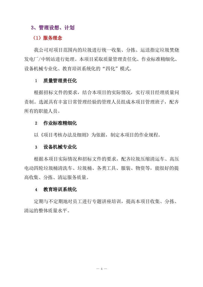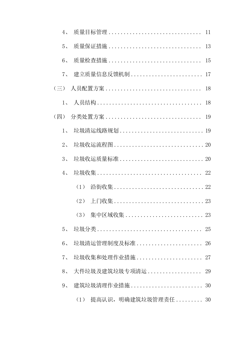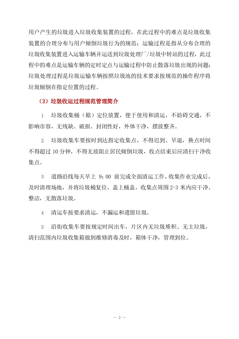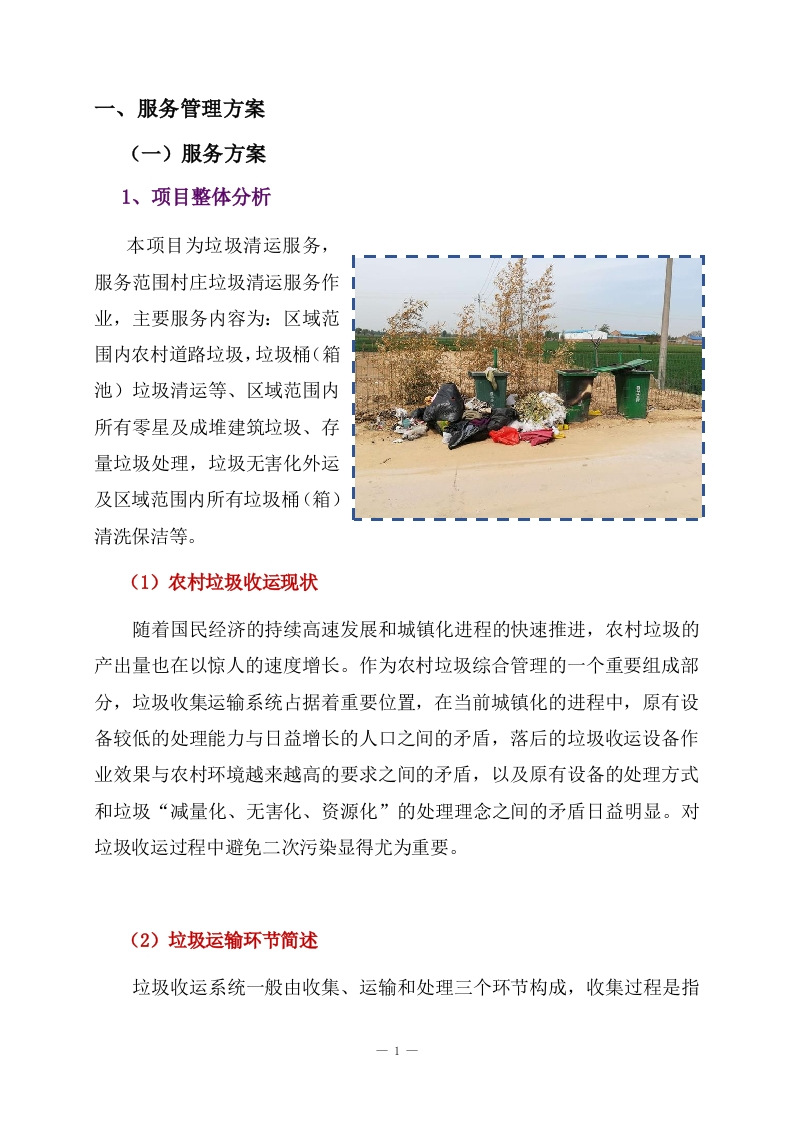 镇区垃圾清运项目服务方案(卫生垃圾清运)312页adminxiao2个月前发布关注私信3.73MB312页34镇区垃圾清运项目服务方案(卫生垃圾清运)312页此内容为付费资源,请付费后查看R88黄金会员免费钻石会员免费立即购买您当前未登录!建议登陆后购买,可保存购买订单付费资源 第1页 / 共312页 第2页 / 共312页 第3页 / 共312页 第4页 / 共312页 第5页 / 共312页 第6页 / 共312页 第7页 / 共312页 第8页 / 共312页 第9页 / 共312页 第10页 / 共312页 试读已结束,还剩302页,您可下载完整版后进行离线阅读 © 版权声明本站所有资源均来源于网络。THE END08垃圾处理 文本预览 镇区垃圾清运项目服务方案(卫生垃圾清运)目录一、服务管理方案..(一)服务方案...1、项目整体分析...(1)农村垃圾收运现状(2)垃圾运输环节简述(3)垃圾收运过程规范管理简介.....2、管理模式、特点...(1)突破难点、严格依法.......(2)“洁净乡村”梳洗村庄面貌,开辟清爽视界..33、管理设想、计划...(1)服务理念..(2)整体构想.5(二)质量保证体系及措施.·.1、质量保证体系...2、质量监管机构...93、服务质量承诺.......10 查看更多 收起部分 喜欢就支持一下吧 分享QQ空间微博QQ好友海报分享复制链接收藏