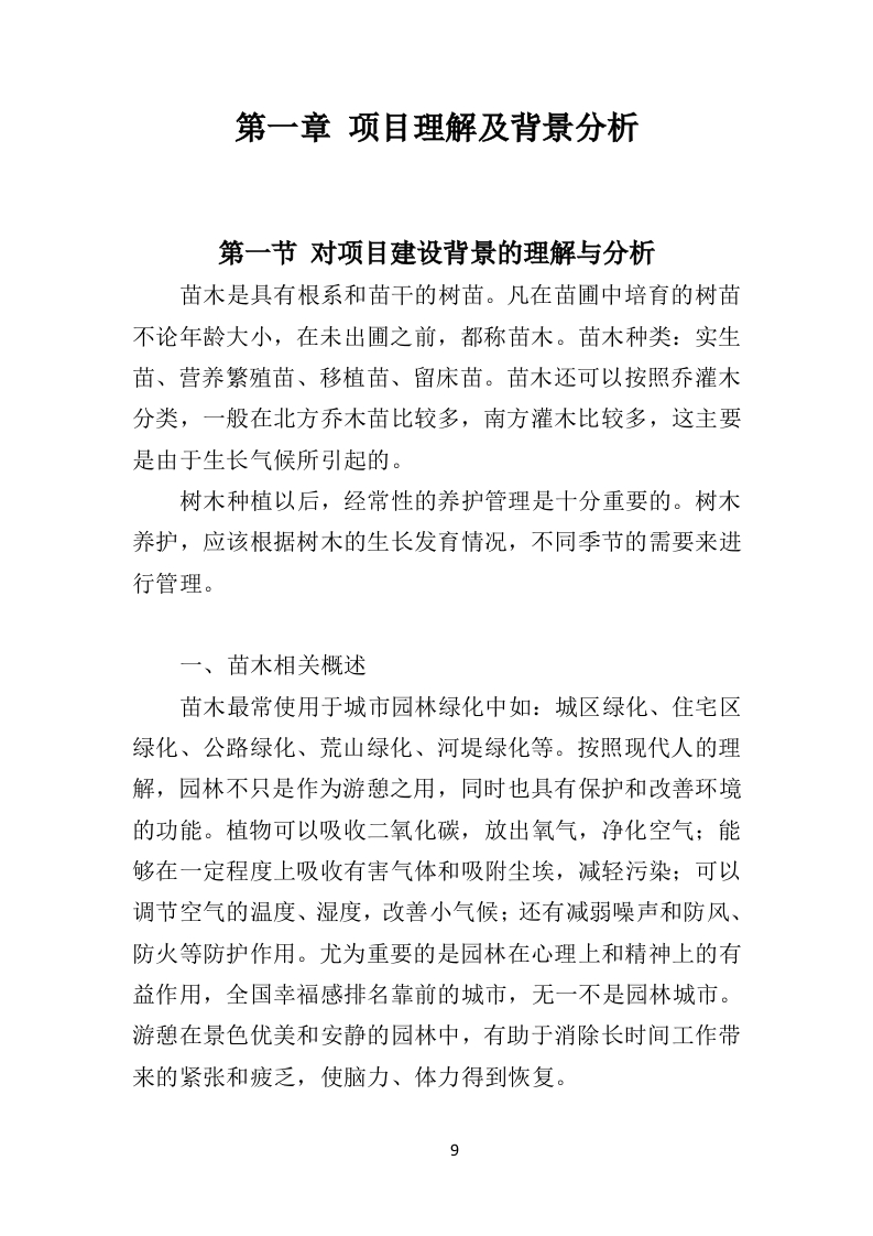 苗木采购投标方案目录第一章项目理解及背景分析.……11第一节对项目建设背景的理解与分析11第二节对项目建设单位的理解与分析.42第三节对项目建设目标的理解与分析.43第四节对项目需求的理解与分析….44第二章项目实施承诺.…..53第一节项目完成承诺....54第二节项目实施进度承诺.55第三节项目人员承诺..57一、项目负责人承诺57二、项目管理人员承诺….59三、技术人员承诺….60四、项目主要人员承诺..62第四节其他承诺..63一、项目规范实施承诺…63二、苗木经营信誉承诺.65三、苗木供应及质量承诺..65四、售后服务承诺...66第三章项目组织机构及生产设备….69第一节项目组织结构69第二节项目服务人员及职责…..79一、项目人员配备….791