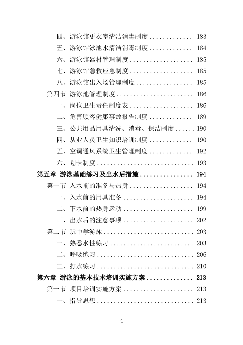 学生游泳培训服务投标方案目录第一章项目背景及需求分析...16第一节游泳运动概述及背景.····16一、游泳运动的起源.......16二、游泳的运动价值23三、游泳运动常用术语...··29四、青少年游泳教育学开展现状分析..35五、游泳的安全注意事项....42六、游泳卫生常识.....·..43七、不同年龄段游泳初学者教学方法梳理....·44八、游泳教学的重点难点及其教学方法.·47第二节项目需求分析.·.52一、项目概况..·.52二、服务范围及预算金额..52三、采购内容..53四、服务要求53五、资金保障.54六、培训要求..54七、安全预防措施.·.56第二章项目整体实施方案.·58第一节项目整体规划..·58一、指导思想...58二、课程的性质、目的和任务58