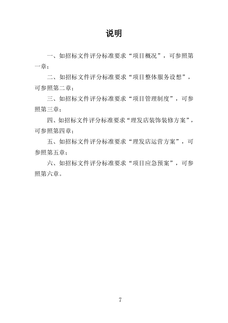理发店承租投标方案156页adminxiao2个月前发布关注私信0.83MB156页43理发店承租投标方案156页此内容为付费资源,请付费后查看R55黄金会员免费钻石会员免费立即购买您当前未登录!建议登陆后购买,可保存购买订单付费资源 第1页 / 共156页 第2页 / 共156页 第3页 / 共156页 第4页 / 共156页 第5页 / 共156页 第6页 / 共156页 第7页 / 共156页 第8页 / 共156页 第9页 / 共156页 第10页 / 共156页 试读已结束,还剩146页,您可下载完整版后进行离线阅读 © 版权声明本站所有资源均来源于网络。THE END27社会服务 文本预览 理发店承租投标方案目录第一章项目概况.·9第一节项目背景..9一、定义.。。。。9二、发展趋势....9第二节项目经营管理要求12第三节项目经营管理目标..·.·14一、总体目标...15二、具体目标...15第二章项目整体服务设想.·..17第一节理发店运营能力说明.....·17一、现场运营手册17二、服务标准及服务监控手段.··19第二节服务承诺22一、安全承诺22二、用电承诺23三、治安承诺。。。。。23四、卫生承诺..24第三节项目保障措施.·25一、人员保障..。。。。。25二、资金保障.·.26三、领导保障.·26第三章项目管理制度...1 查看更多 收起部分 喜欢就支持一下吧 分享QQ空间微博QQ好友海报分享复制链接收藏