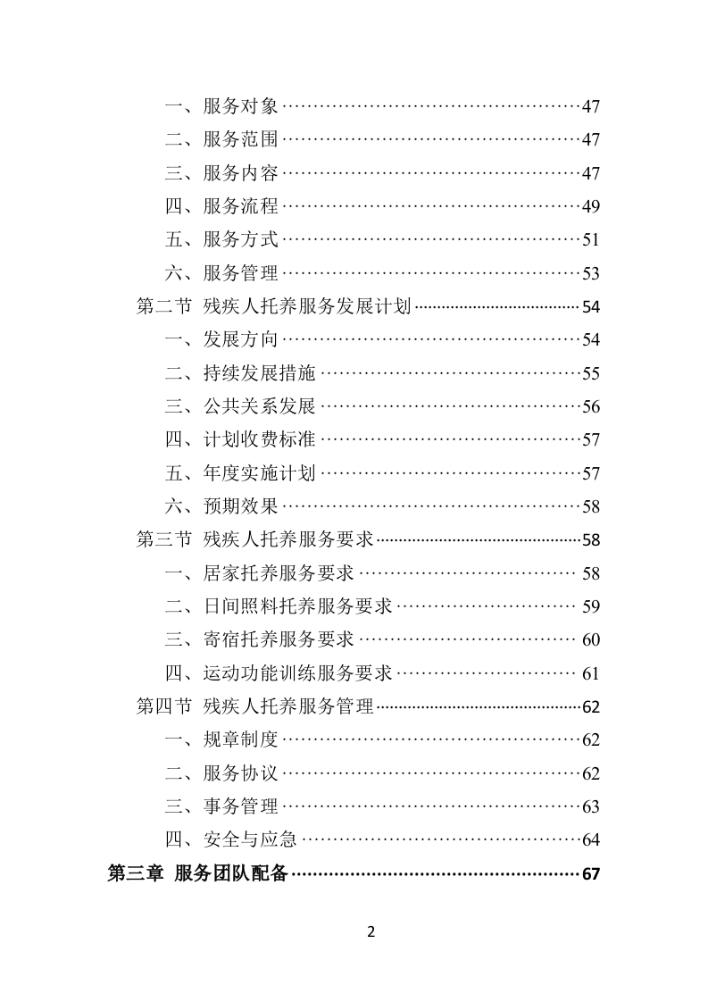 残疾人托养服务投标方案目录第一章项目概况分析…14第一节项目背景……14一、行业背景……14二、残疾人托养服务概念15第二节残疾人托养服务现状……17一、国外托养服务现状…17二、国内托养服务现状…18三、我国残疾人享受托养服务情况…19第三节残疾人托养服务存在的问题……20一、托养服务存在供需矛盾…20二、托养服务内容单一…21三、机构托养服务质量不高…22第四节残疾人托养服务问题的原因分析…23一、托养服务制度建设存在缺陷…23二、托养服务社会网络构建不合理…26三、政府政策影响残疾人托养服务选择…30第五节完善残疾人托养服务体系的建议…31一、完善托养服务制度建设…31二、合理利用有效资源…36三、精准匹配“供给一需求”…44第二章整体服务设想…47第一节残疾人托养服务思路…471