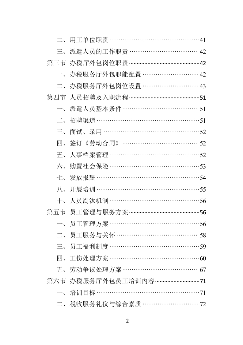 办税服务外包投标方案目录第一章项目背景与需求分析…13第一节办税服务外包背景…。…13一、办税服务大厅业务外包的现实意义…13二、办税外包所承接纳税服务大厅业务的可行性…14三、办税服务外包应注意的问题及建议…15第二节办税服务外包项目需求及相关要求…17一、技术要求…17二、项目组成…18三、服务对象..…19四、项目要求…19第三节针对本项目拟定的服务方案…29一、管理理念与目标…29二、服务内容…30三、公司服务的核心优势30四、运营管理…31五、运作流程……32第二章组织架构与人员配备…。…38第一节公司组织机构设置……38一、组织架构图……38二、部门介绍……38第二节三方职责…40一、本公司职责…401