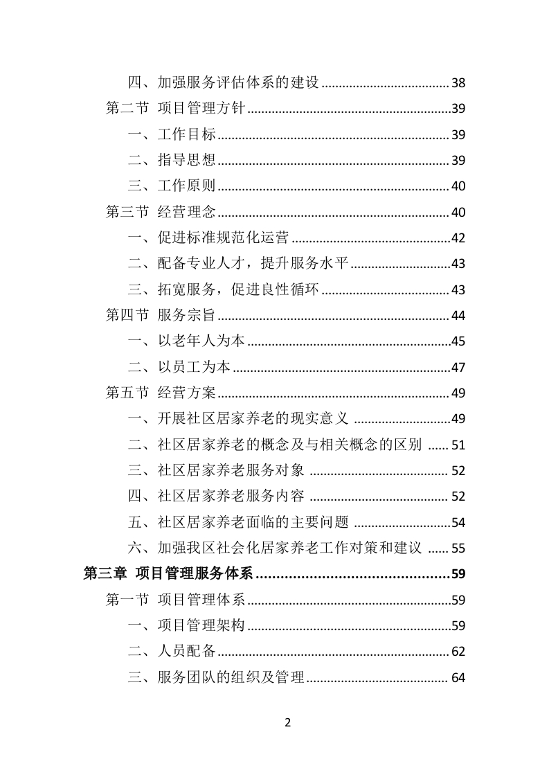 居家养老服务中心投标方案目录第一章项目背景及需求分析….15第一节对项目建设背景的理解与分析.15一、居家养老的背景起源.…..15二、居家养老的基本任务…..16三、居家养老的服务形式..18四、居家养老的发展优势…..19五、居家养老的社会意义。.22六、居家养老的发展思路.…..23第二节对项目建设单位的理解与分析…25一、居家养老服务项目建设单位….25二、居家养老服务项目拟建设地点….25三、居家养老服务项目的建设内容与规模.25第三节对项目建设目标的理解与分析….27第四节对项目各项建设内容的理解与分析…28一、项目背景28二、服务内容及要求..29三、其他要求....35第二章项目整体服务方案...36第一节项目整体设想与策划…36一、加强居家养老服务队伍体系的建设…36二、加强居家养老服务基础设施体系的规划.36三、加强资金保障体系的拓展...371