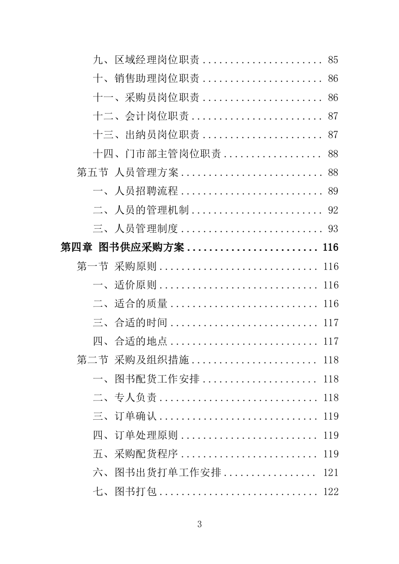 图书供应服务投标方案目录第一章项目背景与需求分析.·18第一节图书服务行业背景..·18第二节项目需求分析.....22一、图书采购需求..23二、图书配订需求.·23三、图书送货需求..24四、图书验收需求..·25五、图书深加工需求25第三节项目重难点分析..·26一、项目重点...26二、项目难点.·.27第四节合理化建议..28一、图书质量建议..28二、图书供货服务建议32三、图书加工服务建议...33第二章项目整体经营管理方案..·35第一节经营总体思路及目标...35第二节图书服务的经营模式...·37一、以人为本的基本价值取向.·.37二、精英的定位与价值观....38三、复合式经营模式...39第三节图书服务管理工作40