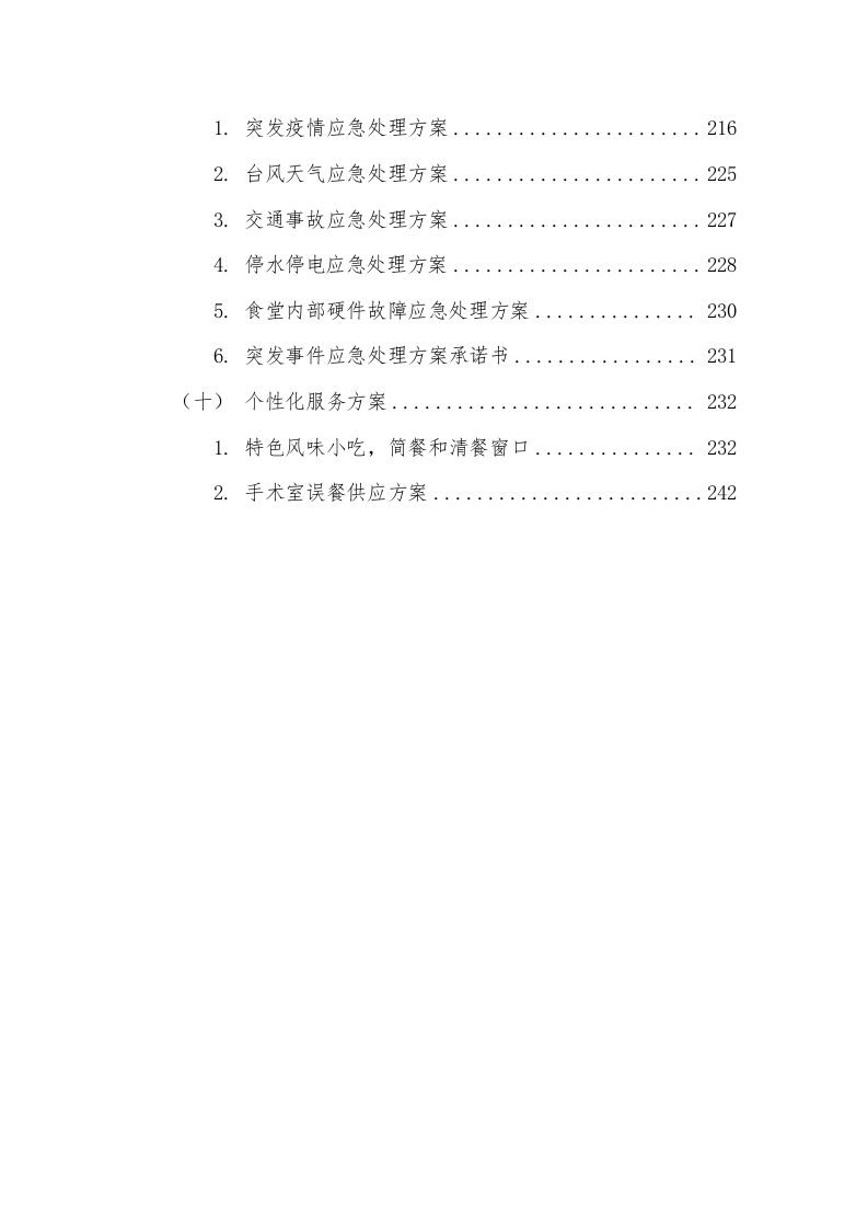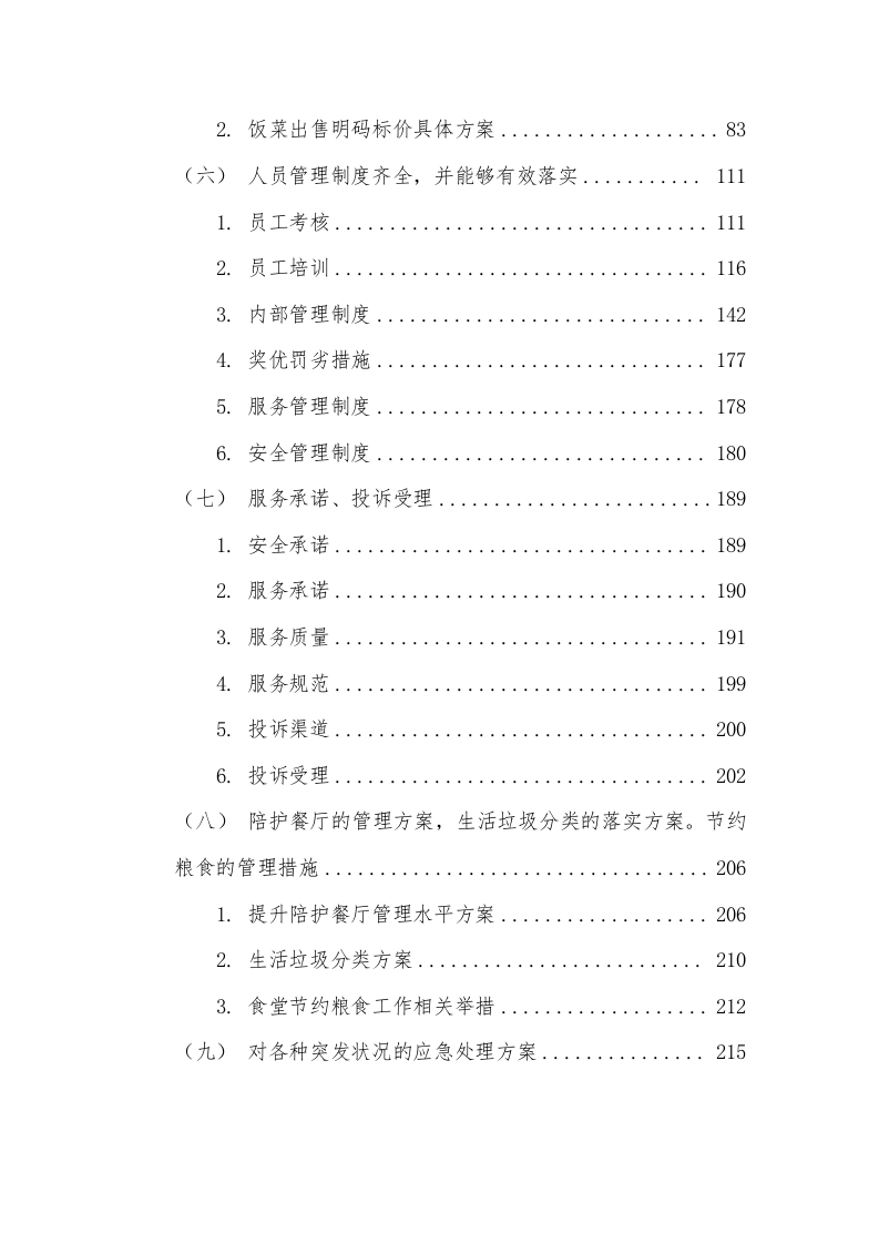 医院食堂经营投标方案(含病人餐、名厨亮灶)245页adminxiao2个月前发布关注私信16.53MB245页49医院食堂经营投标方案(含病人餐、名厨亮灶)245页此内容为付费资源,请付费后查看R66黄金会员免费钻石会员免费立即购买您当前未登录!建议登陆后购买,可保存购买订单付费资源 第1页 / 共245页 第2页 / 共245页 第3页 / 共245页 第4页 / 共245页 第5页 / 共245页 第6页 / 共245页 第7页 / 共245页 第8页 / 共245页 第9页 / 共245页 第10页 / 共245页 试读已结束,还剩235页,您可下载完整版后进行离线阅读 © 版权声明本站所有资源均来源于网络。THE END42餐饮食材食品 文本预览 医院食堂经营投标方案(含病人餐、名厨亮灶)目录(一)食堂经营方案..。11.阳光厨房..2.配送方案..·....133.采购流程..244.验收标准....26(二)营养餐解决方案..361.病人营养餐的点餐和配送方案.·36(三)交接过渡工作方案...」631.进场计划......632.业务对接.653.开业时限安排...674.退场移交.·70(四)优惠措施和服务承诺781.优惠措施..............782.服务承诺...80(五)价格控制及明码标价方案...a.....811.成本分析制度...。.......81 查看更多 收起部分 喜欢就支持一下吧 分享QQ空间微博QQ好友海报分享复制链接收藏