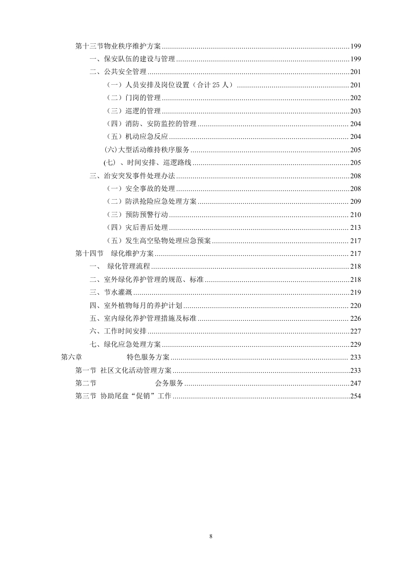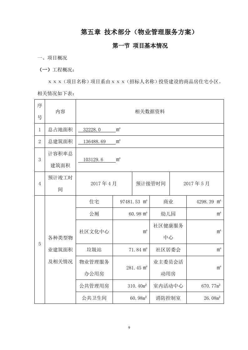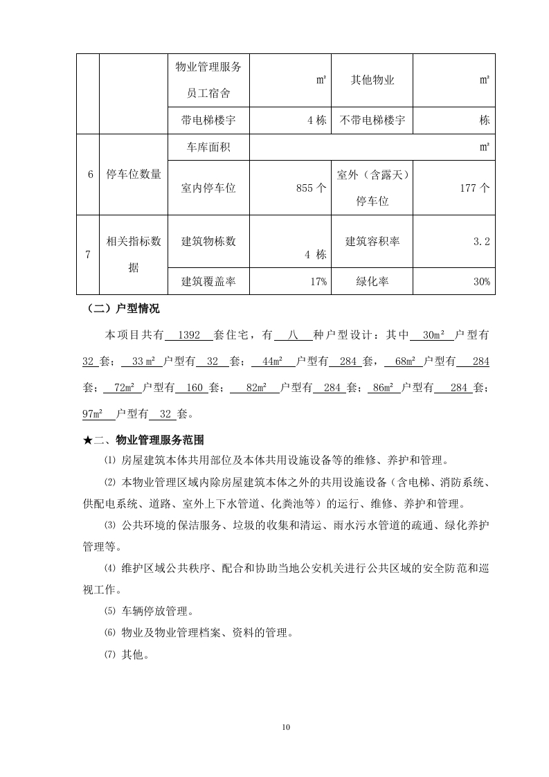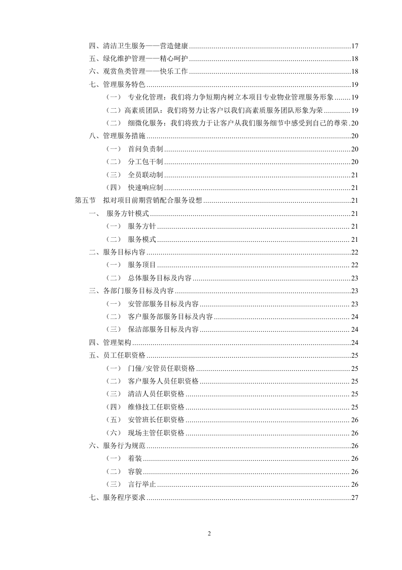 高级公寓前期物业管理服务方案目录第五章技术部分(物业管理服务方案).9第一节项目基本情况…。.9、项目概况…(一)工程概况:..9(二)户型情况…10★二、物业管理服务范围…10★三、物业管理服务期限及接管时间.11★四.物业管理服务标准及要求…第二节项目的特殊性…。.11一、环境的特殊性.…。.11二、物业管理特殊性.12第三节物业的重点、难点分析….12一、安全管理.12(一)安全管理的重点分析….12(二)安全管理难点分析12二、客户服务…12(一)客户服务的重点分析12(二)客户服务的难点分析.13三、设备设施管理…。13(一)设备设施管理重点分析.。.13(二)设备设施管理难点分析13四、清洁管理..13(一)清洁管理重点分析.13(二)清洁管理难点分析.14五、园林绿化.14(三)园林绿化管理重点分析…14(四)园林绿化管理难点分析.14第四节物业管理构想….15一、安全防范管理一一重中之重.15二、建筑本体、设施设备管理一一贵在养护.16三、节能降耗一一节约为本….16