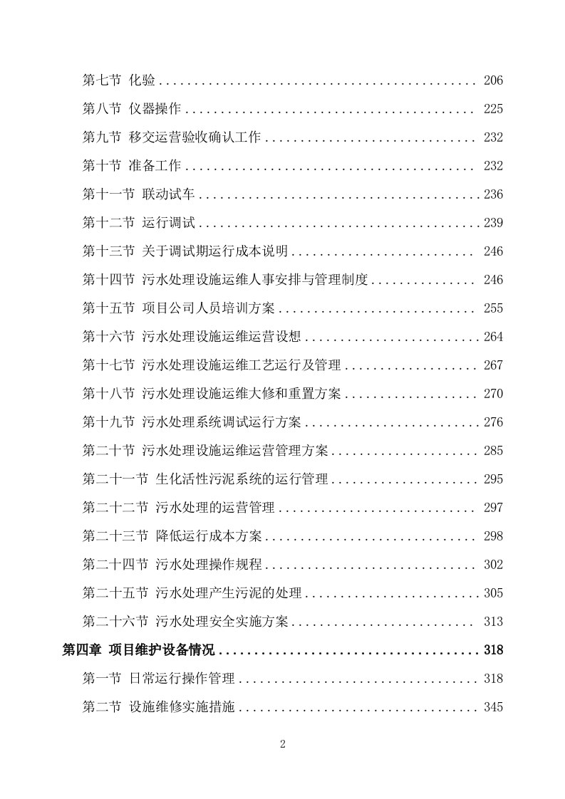 农村污水处理设施运维项目投标方案目录第一章服务内容整体响应情况..。第一节项目技术要求..第二节项目背景..15第三节项目总体要求.··41第四节项目人员配置及职责...:54第五节安全作业责任制..75第六节安全操作规程.·..·80第七节污水处理设施运维岗位职责范围.....88第八节项目岗位职责.........93第九节项目组织结构设置及人员配置.···....98第二章对服务重点与难点的分析...102第一节污水处理设施运维运营重难点分析及解决对策....·..102第二节运营重难点分析情况计划及解决对策...137第三节污水处理突发事件难点处理措施及解决对策..·。139第三章整体系统运作及设施维护管理方案..164第一节污水处理设施运维概述...。164第二节污水处理设施运维整体运营管理方案..164第三节日常工艺流程..。180第四节现有工艺评价及优化..·185第五节水量水质波动及其工艺控制188第六节采样...200