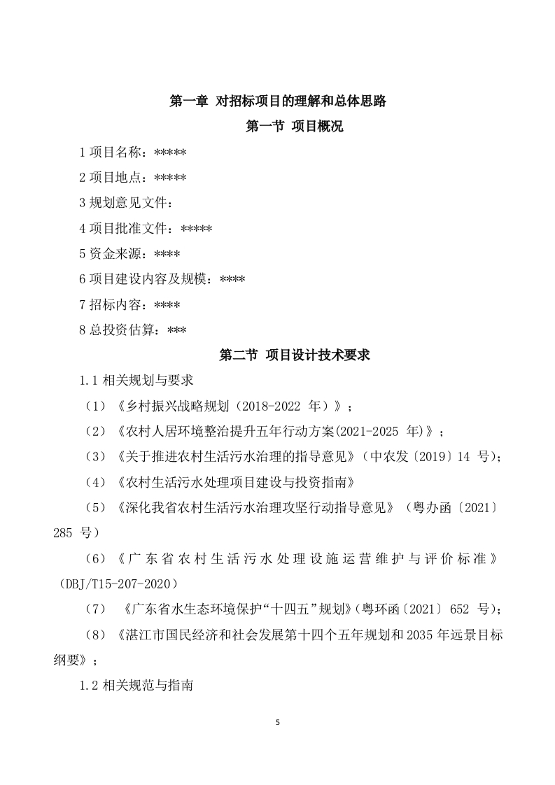 农村污水治理项目勘察设计项目投标方案目录第一章对招标项目的理解和总体思路…5第一节项目概况第二节项目设计技术要求.5第三节项目总体设计思路及原则.8第四节项目的复杂性和特殊性..12第五节应对措施13第六节现场服务阶段.…20第七节现场踏勘目的22第八节现场踏勘制度..24第九节与业主交流技术要求26第十节设计工程人员配备…。27第十一节设计人员管理方案.42第十二节设计人员管理制度47第二章对项目设计构思及总体方案说明….74第一节设计方案说明.74第二节优化设计管理...75第三节设计原则76第四节勘察工作任务和要求78第五节项目主要工程地质问题分析79第六节设计思路81第七节勘察应对措施...82第八节基本任务要求86第九节工程勘察现场安全应急预案87