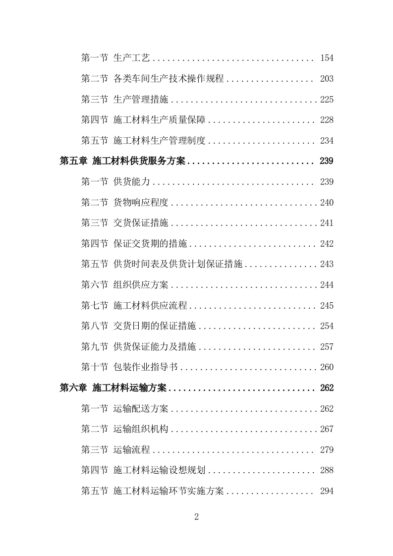 各类施工材料采购及配送服务方案目录第一章项目整体服务设想.·6第一节内部管理制度规范健全…6第二节施工材料采购理念..·48第三节施工材料供货计划..51第四节施工材料采购实施计划66第五节项目总体服务进度方案.·.69第六节项目管理服务思路.·.72第七节施工材料采购保障方案.·74第八节施工材料采购组织保证措施....·77第二章项目组织机构和人员配备..91第一节组织机构建立计划..91第二节项目组织机构说明93第三节项目人员配备计划...103第四节项目岗位职责说明...110第三章拟投入项目设备....·131第一节拟投入设备机械清单131第二节设备操作规程..135第三节生产设备的管理...145第四章施工材料生产方案..·154
