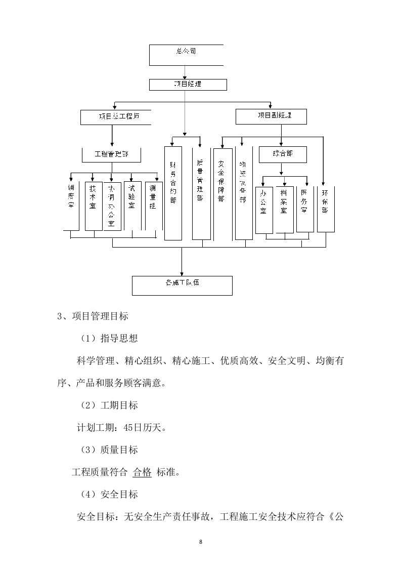 市政道路改造施工方案目录第一章施工方案第一节施工大纲6第二节施工措施12第三节施工技术方案及工艺15第四节编制依据144第五节编制原则144第二章施工总体部署.…,147第一节施工顺序147第二节工程管理目标】148第三节施工总体指导思想和原则150第四节施工组织机构.150第五节施工总体部署…...154第六节施工总体进度计划和阶段性工期安排155第七节劳动力使用计划.159第八节主要材料供应计划及供应方案.160第九节主要施工机械设备供应计划161第十节现场试验设备、仪器及检测设备供应计划161第十一节施工供水、供电计划162第十二节资金使用计划162第三章施工总平面布置…164第一节施工总体布置原则164第二节施工场地内临时设施164第三节平面布置.…166第四节施工现场供水、供电方案167第五节总平面图布置的原则169第六节施工临设布置规模、位置169