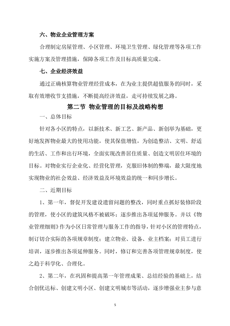 物业服务项目投标方案目录第一章物业管理整体设想及策划4第一节总体策划措施…2第二节物业管理的目标及战略构想.5第三节物业管理服务的整体设想及策划思路,.7第四节管理机构设置和规章制度.11第五节管理人员的配备及管理....15第六节各项管理服务承诺及指标17第七节物业企业管理方案.…20第八节企业经济效益26第九节物业管理服务水平的整体设想及策划29第十节物业管理服务的整体设想及策划40第十一节物业管理服务总体设想及策划46第十二节物业企业管理方案59第十三节服务设想与策划74第二章管理方式、工作计划与年度任务目标….79第一节管理方式....79第二节工作计划91第三节年度任务目标94第四节管理机构设置和规章制度56